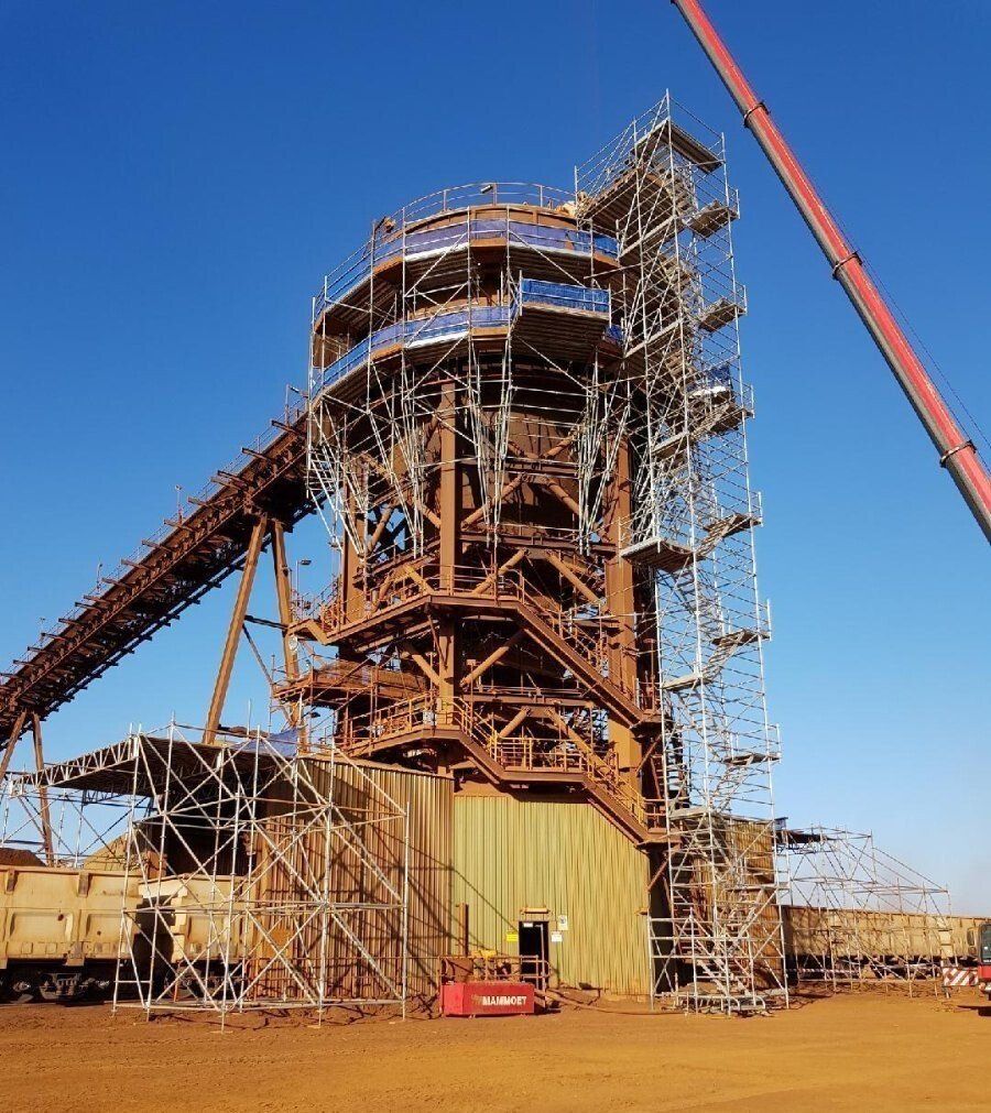 - Build cantilevered scaffold modules on the ground then craning them into position around the TLO bin, once secured the final 4 mts were added as modules.